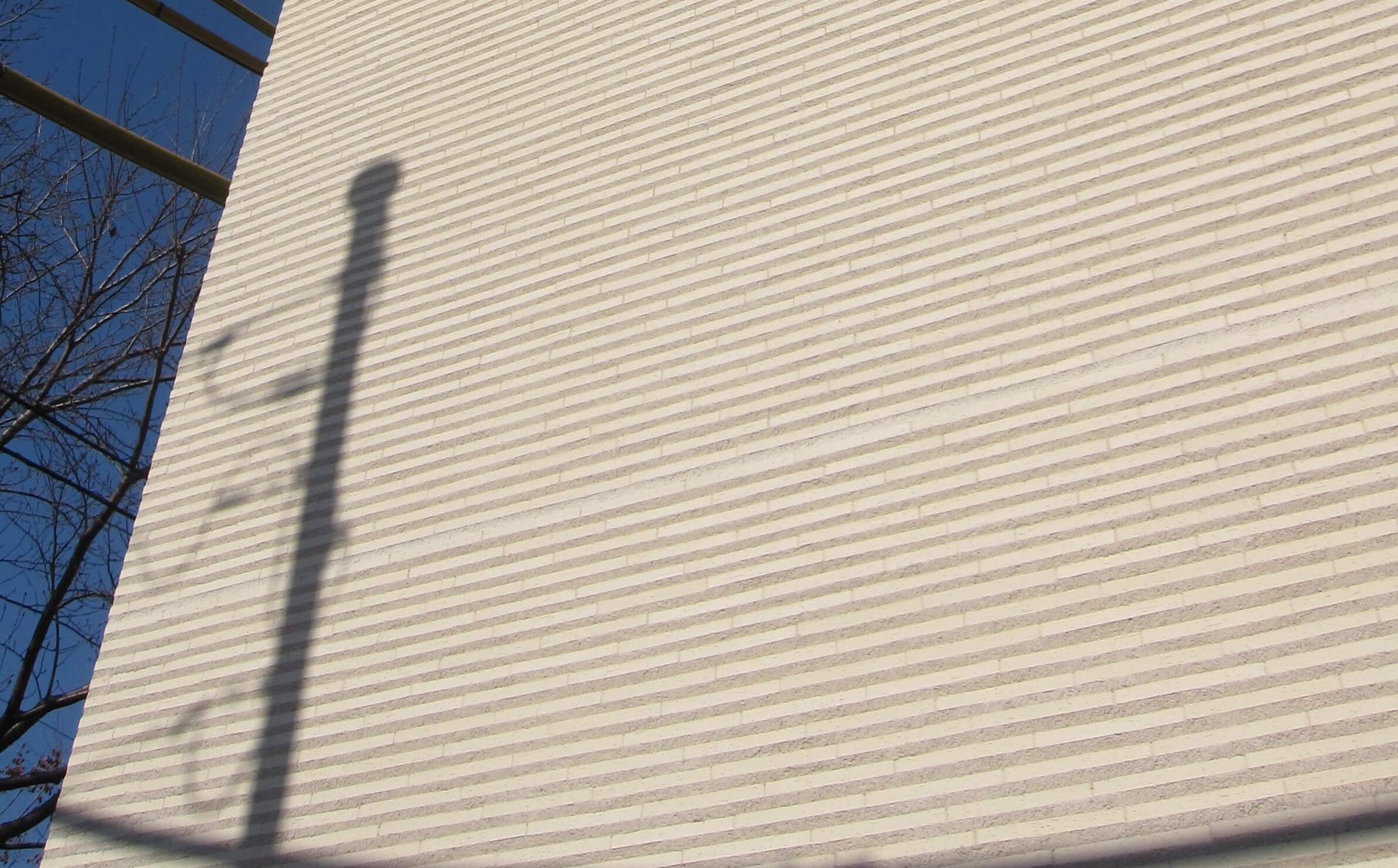 壁面に規則的なラインが走ることで、それが意図されたデザインとして読まれる。構造の要請として生まれた線が、建物の表情の一部になる。うまくいけば、その線があることによってむしろ壁全体に緊張感が生まれ、引き締まって見えることもある。