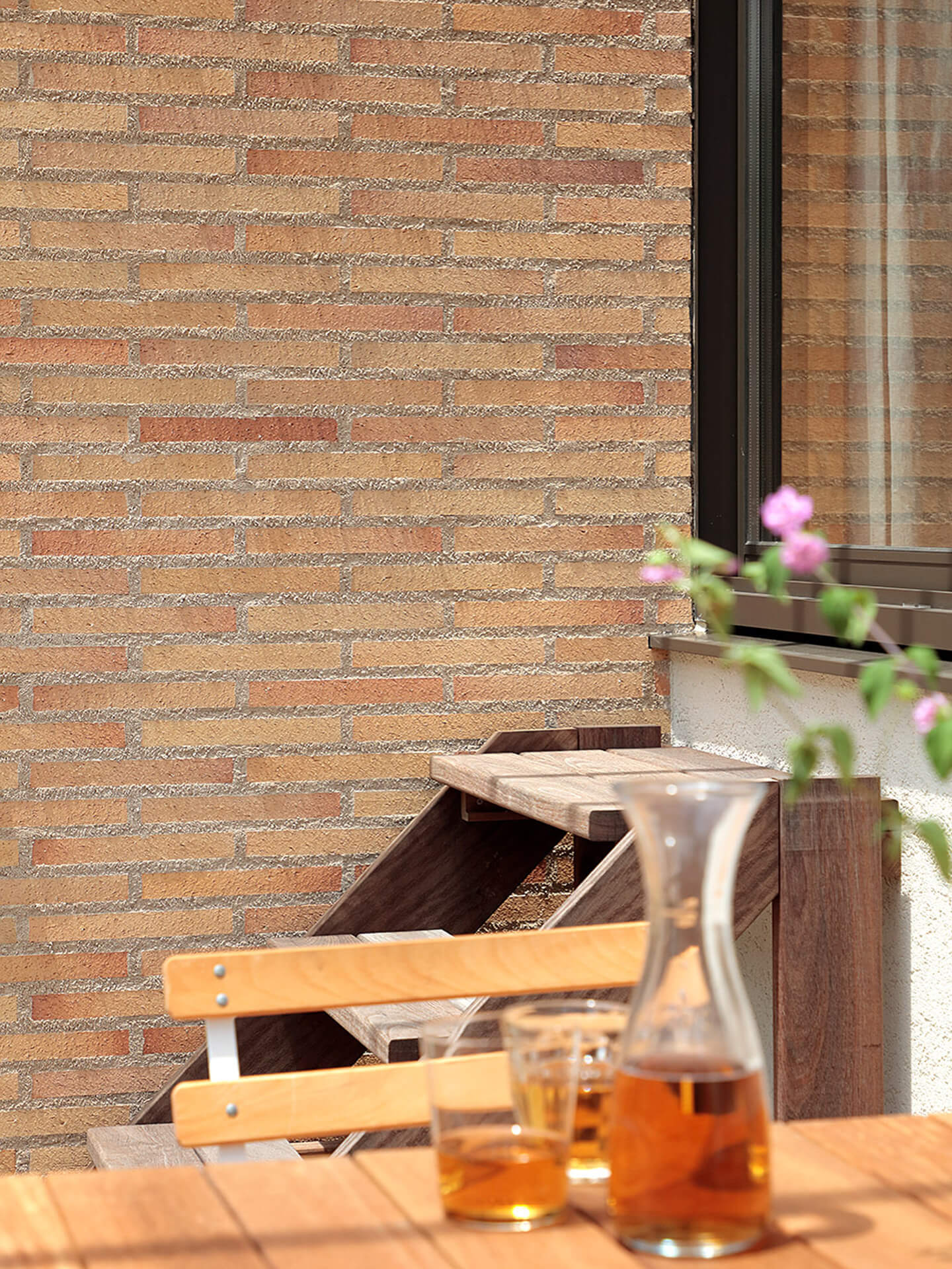 木造の個人邸です。弾性ボンド張りでタイルを張り、15mm以上の目地幅でざっくりとしたイメージで仕上げました。細ボーダーですが、厚みが22mmもあるので、出隅の納まりは平のみで施工する事になりました。平タイルをリャンコに張り、コーナーの雰囲気も問題ありません。このせっ器タイルの裏足も横からみてもさほど気にならず使い勝手の良いボーダータイルであったと思います。この提案は次回も使えますね。