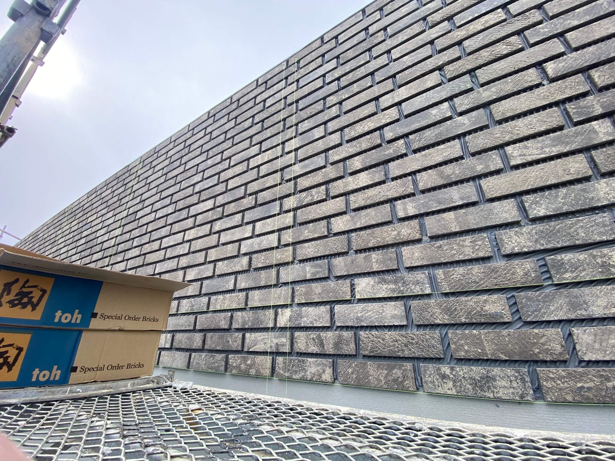 60x210x15mm 弾性接着剤工法 駒返し貼り 目地17mm二瀬窯業ブリックモルタル