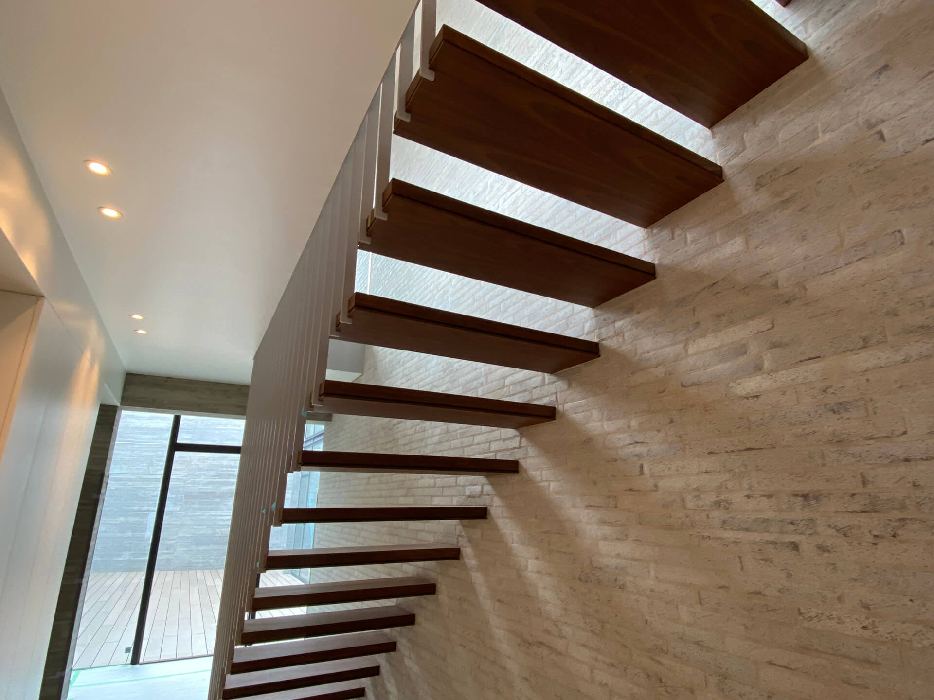 このタイル削り仕上げ工事は、初期のスケルトン状況から施工開始し、階段の取り付けが終了したのにあわせての残工事となりました。