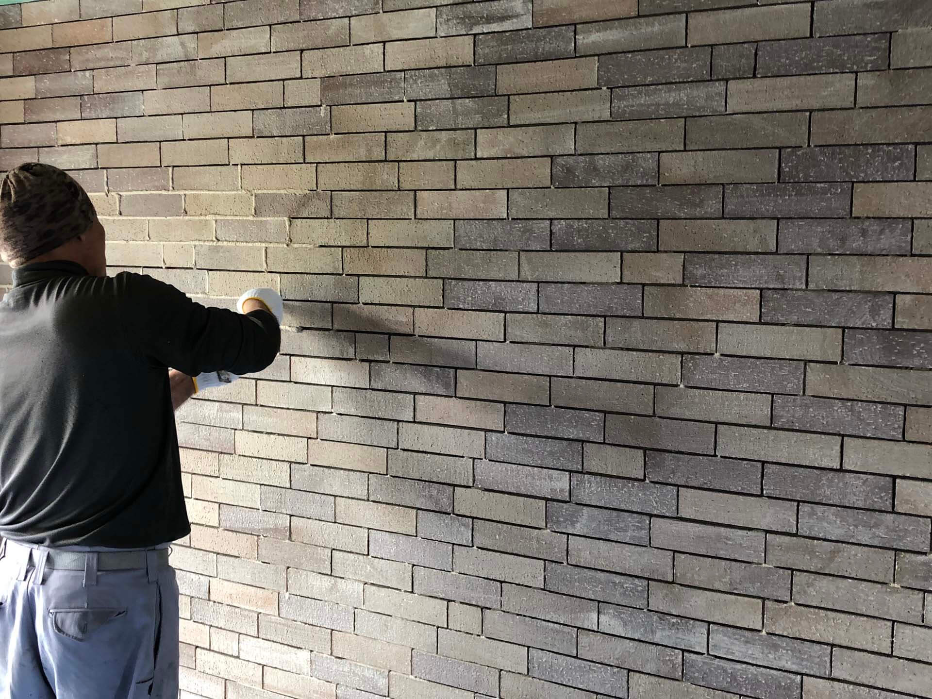 ちょうどその頃、「尾山台の家(けずりタイル)」の施工を手がけていた私たちは、設計事務所こぢこぢさんの住宅において、なにか新しいレンガタイルの表現にチャレンジできないかと考えていた。当社の還元レンガタイルは、窯変による色幅が非常に豊かで、さらに磨きをかけることで、表層だけでなく内部に隠された焼成時の化学変化までもが表情として現れてくる。その個性を、目地ごとフラットに削り込み、細目地で詰めた壁面として一体化させることで、通常の煉瓦タイル貼りとはまったく異質な存在になるのではないか——それは、ある種の実験でもあり、挑戦でもあった。